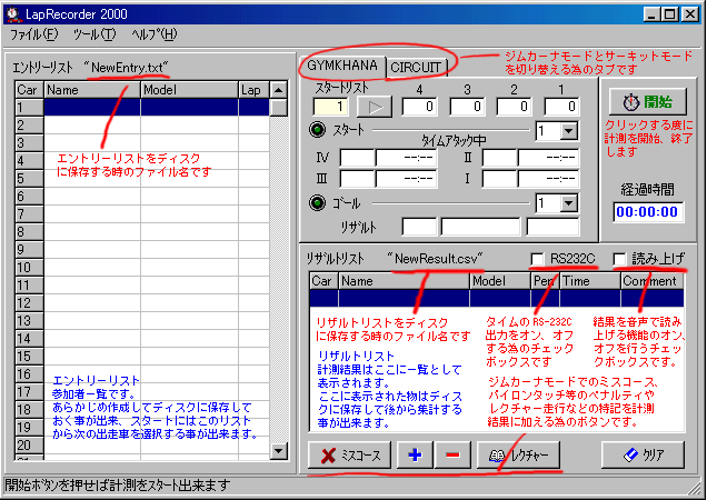 サーキットモードはRS−232Cポートより入力されたコードを元にそれぞれの車両のラップタイムを計測します。