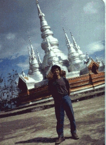 ダーメンロンにある白塔。(だと思う)実はこのあたりの記憶が曖昧。アルバムにはダーメンロンと書いているのでそれに従う。この塔は光り輝いて非常にきれいだった。私の他にも白人の老夫婦などがいたので観光地に違いない。この写真を撮ってくれたのもその人達だ。