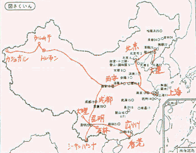 この列車から始まった。 上海からウルムチへは昼夜を走り抜けて3泊4日かかる。 上海−南京−洛陽−西安−蘭州−嘉峪関−哈密−吐魯番−烏魯木斉 西安の向こうはシルクロードの光景が延々と続くのみ。 着いたところは氷点下20度の世界だった…