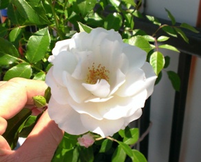 昨年から、バラを育てています。 きれいでしょう! まだまだ初心者ですが、欲を出さずに、一鉢だけ、大切に育てたいと思っています。 このバラは、バラの世界では知らない人はいない、白いバラの代表で、アイスバーグといいます。「氷山」という意味ですね。 開花時の香りと美しさは、クチナシも決して負けてはいませんが、殿堂入りだけあって、つぼみから枯れるまで、すべての行程でこの花はパーフェクトです。 2017/04/10