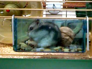 大きめの餌入れに変えました。野菜入れはボツ。クルミはそのままではちょっと食べるの無理みたい。