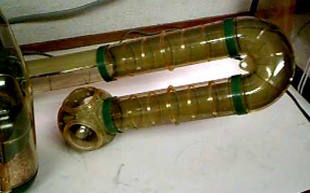 右側のパイプの部分。うーむ、知恵の輪みたい(笑) あーしたりこーしたり。。。いくらでも買ってきてつなぎたくなるゾ。