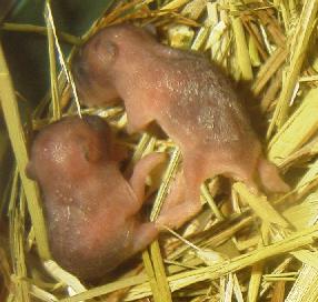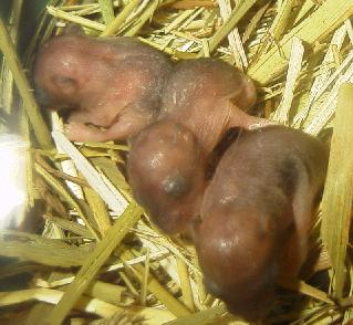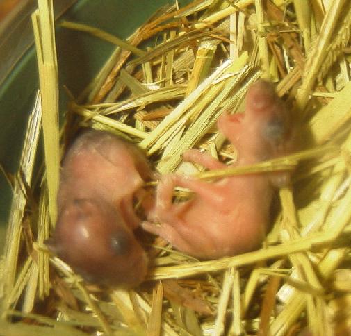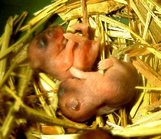 今日、巣をみると子ハムが一匹もいない! ええっ!全滅してしまったのかぁ! これにはあせりました。実は巣を離れた母親のお乳を噛んだまま引きずられてました(笑)それほど強く乳首を噛んでるのですね。 じわじわ力が出てきた感じです。で、下の写真。ときどき口を開けるのですがその瞬間です。雄叫びか? 結構迫力ある。手足も長くなってきた。