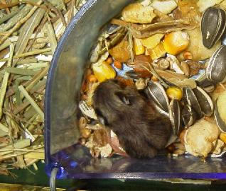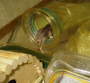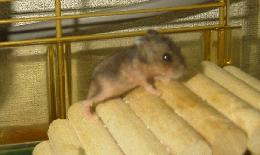 前夜、久しぶりにケージの掃除をしました。底の部分を外したとき、たまたま紙切れが舞い込みました。それに異常に反応するリナ。あれよあれよという間に、紙切れをシュレッダーして、右の端のパイプを巣にしてしまいました! 次の朝、さらに床材をもってきて完成させたのが下の写真。 もともとここはリナの奥座敷。子育てに疲れるとここで寝ていたのです。 今度はここを別荘にして、子ハムを育てる場所を2カ所にしました。もっともこのところの母離れは、それほどの接触を必要とせず、子供単独でも巣で寝るようになっています。