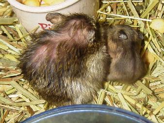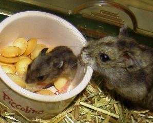 身軽に移動、、、後ろ姿もハムスターです。右はリナと一緒にジャガイモを食べる図。リナの背中に産毛が生えてきました。このまま良くなってくれたらいいけど。