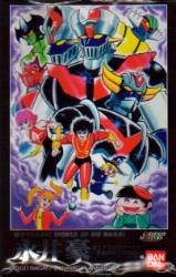 全135種類+BOX混入カード1種類 +プレミアカード3種類の139種類 <レギャラーカード> 1.キャラクターカード(18) 2.デビルビーストカード(27) 3.アニメーションストーリーカード(45) 4.原作イラストカード(18) 5.パズルカード(8) <インサートかーど> 1.永井豪イラストカード(9) 2.アニメーションイラストカード(9) <プレミアカード> 1.応募券30枚での交換カード(1) 応募期限:1999年11月末日 2.ラッキーカード(1) 3.ラッキーカード交換カード(1) |