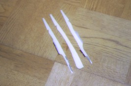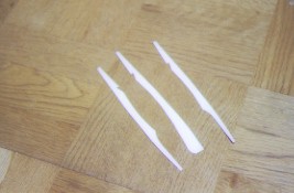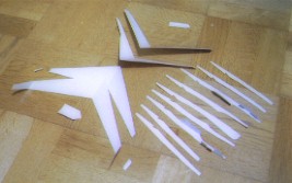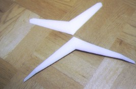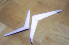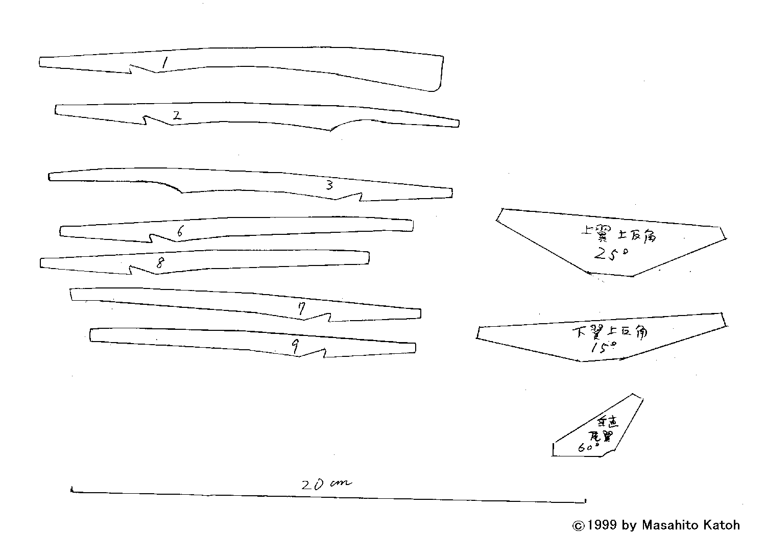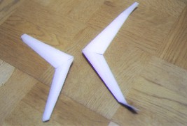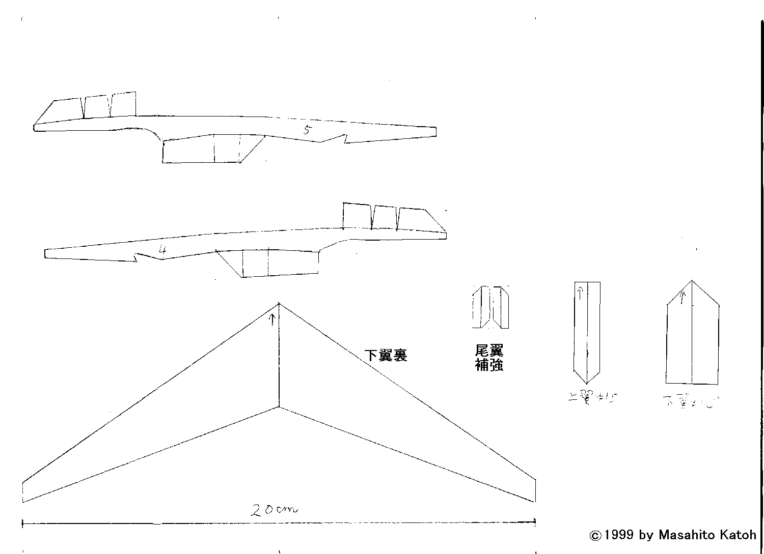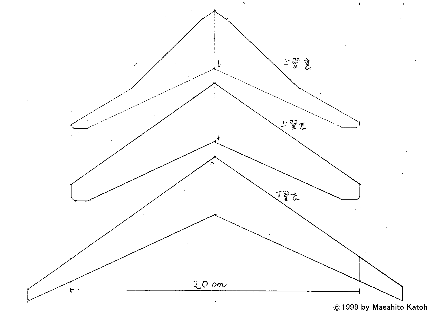 それぞれの主翼の前1/4と後ろ1/2に切れ込みを入れる。