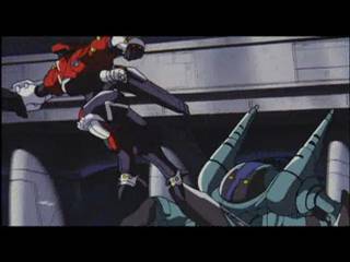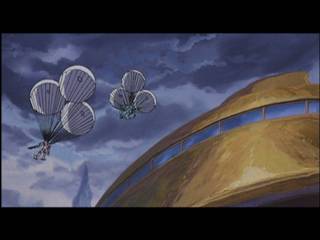 ビードルの後部ハッチが開きジャンリュックが操る新型LMゾンカーとグレイフォックスが空中からベイシティー警察本部を強襲