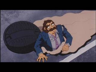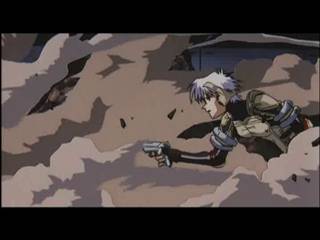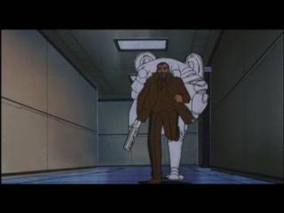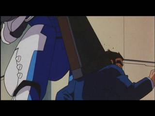 グレイフォックスがエンドウ警部に向け銃を撃つ
