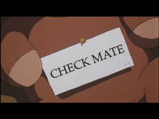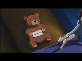 ジャンリュックが何かに気づきクマのぬいぐるみを調べる