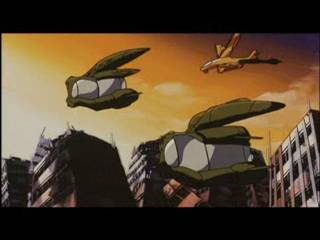 夕焼けの空をついてビートルが編隊を組んで飛んでいく