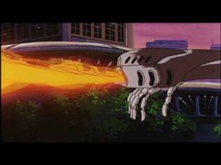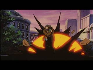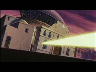 突き抜けたプラズマ光が建物に吸い込まれるように突き刺さり建物は爆発炎上する