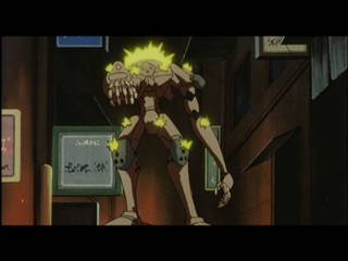 手前まで一杯に広がるプラズマ光の前に立ちすくむシルヴィア