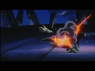 着弾、右腕がもげる