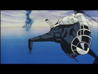 シルヴィアが揺れるヘリから狙いを定めバズーカを放つ