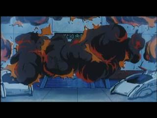 ビルの一部が爆発する