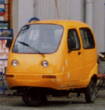 大連で見かけた、多分最新型の渋めの三輪自動車。色は青しか見なかった。 キュートな赤い三輪自動車 これもかわいい。これは、多分一般車両。