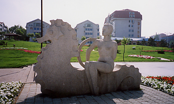 これこれ、この「イルカに乗った少女(?)」とラ○ホテル(言い方古い?)かと見紛うような建物が目当てだったのだ。
