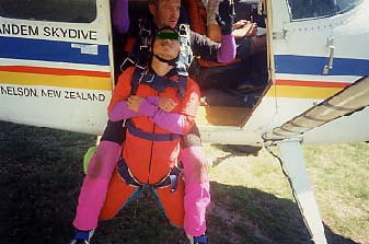 と言う。カメラマンが撮ってくれるにしては、えらく安いな、と思ったら、セスナの翼の端に小型カメラが付いていて、そのカメラで飛び出す直前の写真を撮ってくれるというのである。