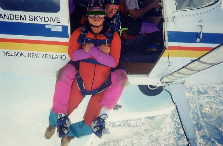 必死で足を戻そうとするが、かなりの力が必要だ。足をバタバタさせながら、ひぃひぃ言っていると、ジョンが後ろから足を絡めようとして来る。後ろにいるジョンが足を出してくるわけだから、私の身体は自然に機外に押し出されることになる。地上で教わった通り、腕を交差させて少し上向き加減の姿勢を取る。