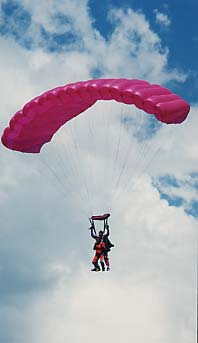 フリーフォール中の暴力的とも言える高揚感とは別の、リラックスした感覚が味わえるのがパラシュート降下だとも言える。