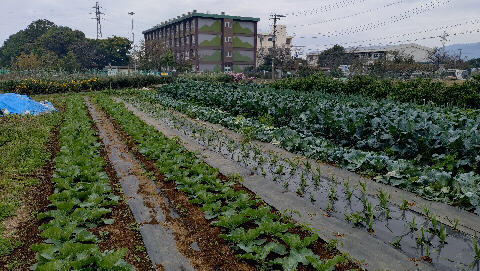 畑の一部です。今月の写真はカメラ不良のためスマホで撮ったものです。キャベツ、ニンニク、ブロッコリーです。