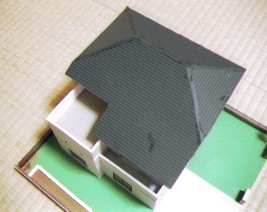 以下の写真が模型の外観図で写真をクリックすると、間取りが見れます。 南東から東南玄関(蔵付き) 1階床面積:20.13坪 2階床面積:14.75坪 蔵(延べ面積外):3.13坪 延べ床面積:34.88坪 ミサワホームの「蔵のある家」の展示場で聞いたところによると、建築基準法の特例で1階と2階の間に天井高1.4m以下の収納スペースを設けても階数及び床面積に参入しなくても良いことになっているそうです。 ということで、面白いので模型を作ってみることにしました。 望遠鏡を使用する屋上を、天井高の高いリビング上にルーフバルコニーを設けることで代用しました。 屋根 2階エレベータ到着高さの関係上寝室は蔵と同じ高さにし、書斎のみ蔵の上で一段高くし、しかも、階段ホールと一体化させています。子供部屋と寝室は蔵が下に無い分天井を高く大空間を演出してみました。 蔵書斎床下が蔵となっています。 1階基本的に別のものと同じです。エレベータ設置スペースを必要最低限にし、その分、浴室を広げて(1.25坪)います。キッチンからエレベータホールに向けての壁とドアを廃止し、エレベータ向かい側の階段下に冷蔵庫収納、ダイニング側の階段下に電子レンジと炊飯器置き場を設ける等微修正はあります。 |