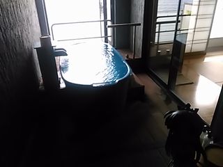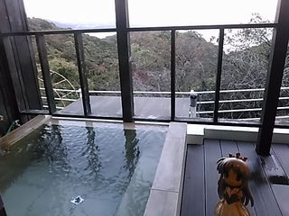 「お部屋に戻ってきました、お部屋の温泉でゆったりです」