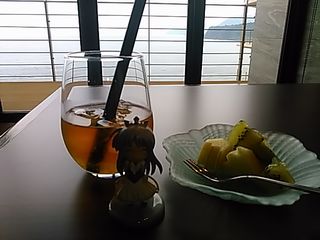 「チェックアウト前の、桃のジュースです♪」