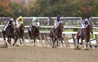 | 先頭を突っ走るヨハネスブルグ(右端の馬) | ||||||