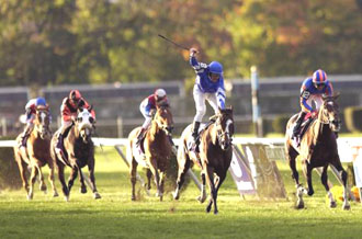 | ●BCターフで優勝したのはファンタスティックライト。 ターフのカテゴリーに関してはアメリカ馬は欧州勢には太刀打ちできない事を改めて証明したようです。 同馬は最終Fの時点で21/2馬身もリードしており、そのまま後続を抑えきりました。 2着はミランで最終的には3/4馬身差でした。 勝ちタイムは2分24秒36。これはスカイクラシック(1992年)のタイムを0.14秒上回るコースレコードだった。 ファンタスティックライトは本年、英・愛で3つのG1レースに優勝していました。(タタサルスGC、プリンスオブウェールズS、愛チャンピオンS) オーナーのチーム・ゴドルフィンは最初BCクラシックに出走させる予定でしたが、水曜日になって正式にターフに出走させる事に決めました。 『もし彼が負けてたら、とてもがっかりしたでしょうね。』 とチーム・ゴドルフィンのレーシング監督S.クリスフォード氏は言った。 レーススタートから6Fまではウィズアンティシペーションとティンボロアがレースのペースを作りました。 その中、ファンタスティックライトは4〜5番手に位置していました。 2F24秒4。半マイル48秒02だから普通のペースである。(BCマイルではシティージップが半マイル45秒25で走れているのでよほど馬場は良かったと思える) 結局の所、上がりの半マイルも48秒前後で決着しているのでレースは締まったものになった。 向こう正面の終わりにはウィズアンティシペーションのリードは殆ど無くなっていた。 替わってティンボロアが先頭に立つ。残り2Fの時点でティンボロアは2馬身のリードを保っていた。 しかし、この時鞍上のエドガー・プラド騎手には分かっていた。---ゴールまでは保たないだろう--- 『私の馬は順調だった。ウィズアンティシペーションの脚が止まり、私に馬が先頭に立った。私にはティンボロアがそんなには保たないだろうという事は分かっていた。何かターゲットを見つけねばと思った。』 と、プラド騎手は後でコメントしている。 ティンボロアは先頭で直線に入ったが、ファンタスティックライトを脅かす事はなかった。 『そんなに早く先頭に立ちたくなかったんだ。ティンボロアに行けるだけ行ってもらってから、自分の馬を追い出したんだ。 良い脚を使ってくれましたよ。』 と、デットーリ騎手は言う。 先頭に立ったファンタスティックライトにミランが襲いかかる。 『僕が怖れていた事は、先頭に立ってしまうと馬(ファンタスティックライト)が遊んでしまう事だった。 だから、僕は”もう少し頑張れるかい?”と馬に問い続けていたよ。』 そして、見事に先頭でゴールしたのだった。 チーム・ゴドルフィンにとってはここ3年で2回目の勝利となりました。 |