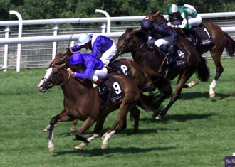 | ●仏2000ギニーの優勝馬であったはずのノヴェールがフランスギャロの裁定で失格処分にされたが、 今回の彼の優勝には何の文句もいわせはしない! A.オブライエンの第2の矢ブラックミナルーシュを敗り捨てたことで『欧州マイル王』の称号を手に入れました。 2着にはモハメド殿下の持ち馬のノーエクスキューズニーデッドが入り、ブルーの勝負服の1,2だった。 ブラックミナルーシュはそこから1馬身余り離れた3着。 ブラックミナルーシュの父は昨年このレースを制したジャイアンツコーズウェイと同じストームキャット。 同じ夢を見たかっただろうが、そうは問屋が下ろさなかったようだ。ざま〜見ろ!(笑) G1独占禁止法に抵触したんだな、きっと!(笑) 喜びのモハメド殿下のコメント 『ノヴェールはヨーロッパのベストマイラーだと思うよ。とても勇敢でタフな奴さ。今日の走りは非常に素晴らしかったよ』 勝利ジョッキーはもちろんL.デットーリ。 『アスコットの時(G1セントジェームズパレスS)は仕掛けが早すぎたんでブラックミナルーシュにやられてしまった。 で、今日は少し遅らせ気味に仕掛けたんだ。思わく通り勝てて良かったよ。彼は決して無様なレースはしないからね!』 レーシングマネージャーのS.クリスフォード氏の強気なコメント。 『彼の次の目標はG1ムーランドロンシャン賞、G1クイーンエリザベス2世S、G1BCマイルです。』 欧州のマイル王から世界のマイル王へ路線を取る事を表明しました。 また、先週のフランスギャロの裁定については 『G1のタイトルを獲り返す事はとても重要な事です。どんな理由にせよ剥奪されるということは恥ずかしい事だからです。 そして、ノヴェールはG1サセックスSに勝利したことで自分がG1ホースだと言う事を証明しました。 彼はとてもタフな馬です。』 昨年のBCジュヴェナイルはノヴェール唯一の不甲斐ないレースであった。 唯一連に絡めなかったレースだった。 彼は雪辱を果たすため10月のベルモントに向かう。 一方、2着のノーエクスキューズニーデッドは負けてしまった事に”言い訳”することなく、次走はフランスのドーヴィル競馬場で行われるG1ジャックルマロア賞に向かう予定だ。 ブラックミナルーシュの今後の予定については何も発表されていない。 |