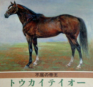 | 空前の人気を集めたオグリキャップが引退した翌年、日本ダービーで新たなヒーローが誕生した。 トウカイテイオー、彼は皐月賞を含めデビュー以来負けを知らないまま日本ダービーに挑み、当然のように圧勝した。「次は3冠だ」この時人々は彼と彼の父”史上最強”とうたわれたシンボリルドルフの活躍をだぶらせていた。しかし、その後の彼の競走生活は父ほどには順調ではなかった。 勝利をもたらす類い希な瞬発力は、皮肉にも度重なる故障の原因ともなったのだ。 けれども、ジャパンカップでオーストラリアのダービー馬との接戦を制し、1年振りにターフに立った有馬記念では常識を覆す勝利を飾った。 結局その復活劇でG14勝目をあげ、競走生活に終止符をうった。父から受け継いだ誇り。 自ら築きあげた伝説。何時の時代も、競馬には彼のようなスターホースが必要だ。 |