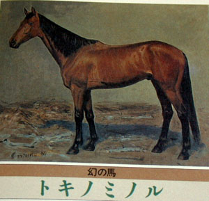 | 「トキノミノルは天から降りてきた幻の馬だ。競馬界最高の記録をうち立て、馬主にこの上ない栄冠を与えたまま、また天に帰っていきました・・・」作家で馬主でもあった吉屋 信子氏がその死を悼んで「幻の馬」と名付けた。ダービーを戦い終えたトキノミノルには破傷風という病魔が待っていた。華やかな、しかし短い一生であった。トキノミノルは、東京競馬場の馬頭観音に隣接する競馬場墓地に埋葬され、この偉大な競走馬を記念して石像(現在はブロンズ像)も立てられた。 | |