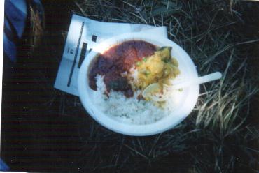 ホワイトステージからぬかるんだ道を歩き、グリーンステージに久々に戻る。まだブランキー・ジェット・シティーがライブをやっていた。この日で解散なのだ。そのまんまグリーンステージを横切り、テントへ戻る。レッドマーキーの低音で寝れるかどうか不安だったが、強引に胃袋に飯を詰め込めば寝れるだろうと思い、ドライ・カレーと鳥のから揚げを買って帰る。深夜12時、腹いっぱいになったので横になる。ベントレー・リズム・エースの爆音が響く中、あっさりと熟睡。shing02見たかったな…。