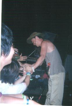 そのまんまヘヴンにいるとジェシ・クレインとかいうアメリカのフォーク・シンガーのステージ。これが美人。歌は透明感があって。ヘヴンの地面の上で寝転がり聴いていました。会場でしょぼくれた親父がいるなーと思ったらロッキン・オンの松村雄策だった。ちょっと聴いてからホワイト・ステージへモビーを見に行く。凄い盛り上がり。健康的なノリではあったが。