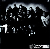 ピラニア軍団 三上寛がプロデュースした隠れた傑作。ご存知東映映画の仁侠映画の名脇役たちによる集団。このアルバムのおもしろいところは、編曲を坂本龍一がやっていることである。もちろん現在の坂本とは全く異なり、ここでは「さすがレコード大賞編曲家賞」という素晴らしい仕事。「死んだがな」言う曲ではJBかフェラか?というぐらいのグルーヴィーなアレンジ。 |